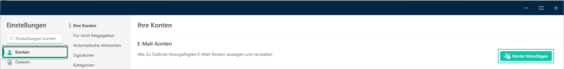 3. Klicken Sie auf Konten und hier auf Konto hinzufügen.